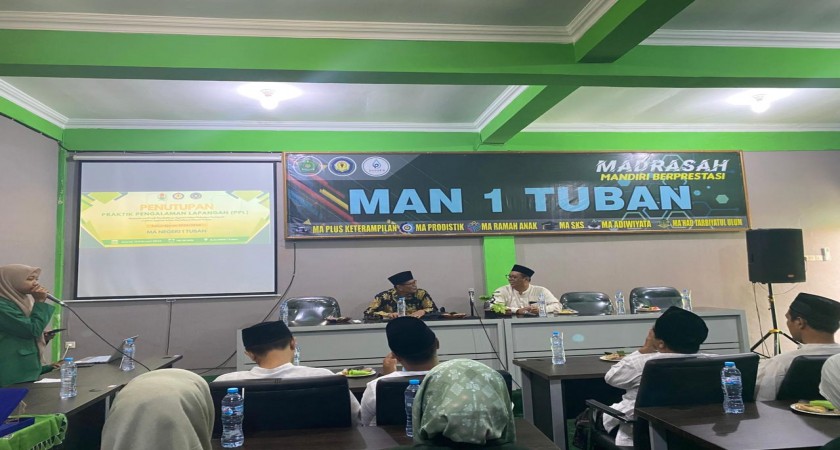 Tuban – MAN 1 Tuban menggelar kegiatan penutupan Praktik Pengalaman Lapangan (PPL) mahasiswa Program Studi Pendidikan Agama Islam (PAI) Fakultas Tarbiyah Institut Agama Islam Nahdlatul Ulama Tuban pada Jumat, 13 Februari 2026, bertempat di Aula MAN 1 Tuban.