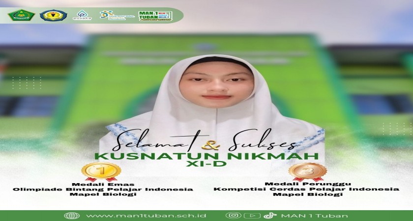 Tidak hanya itu, prestasi membanggakan juga ditorehkan oleh Kusnatun Nikmah, siswi berbakat dalam bidang Biologi, yang berhasil meraih: