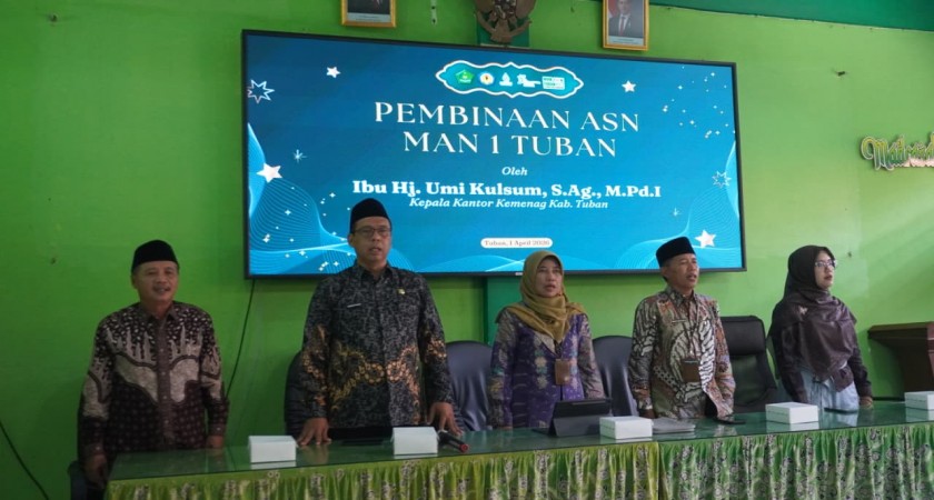 Tuban, 1 April 2026 – Suasana haru sekaligus penuh semangat menyelimuti Aula MAN 1 Tuban pada hari ini. Bertempat di gedung aula madrasah, digelar acara pisah sambut Pelaksana Tugas (Plt) Kepala MAN 1 Tuban yang dirangkai dengan kegiatan pembinaan Aparatur Sipil Negara (ASN) oleh Kepala Kantor Kementerian Agama (Kemenag) Kabupaten Tuban, Hj. Umi Kulsum.