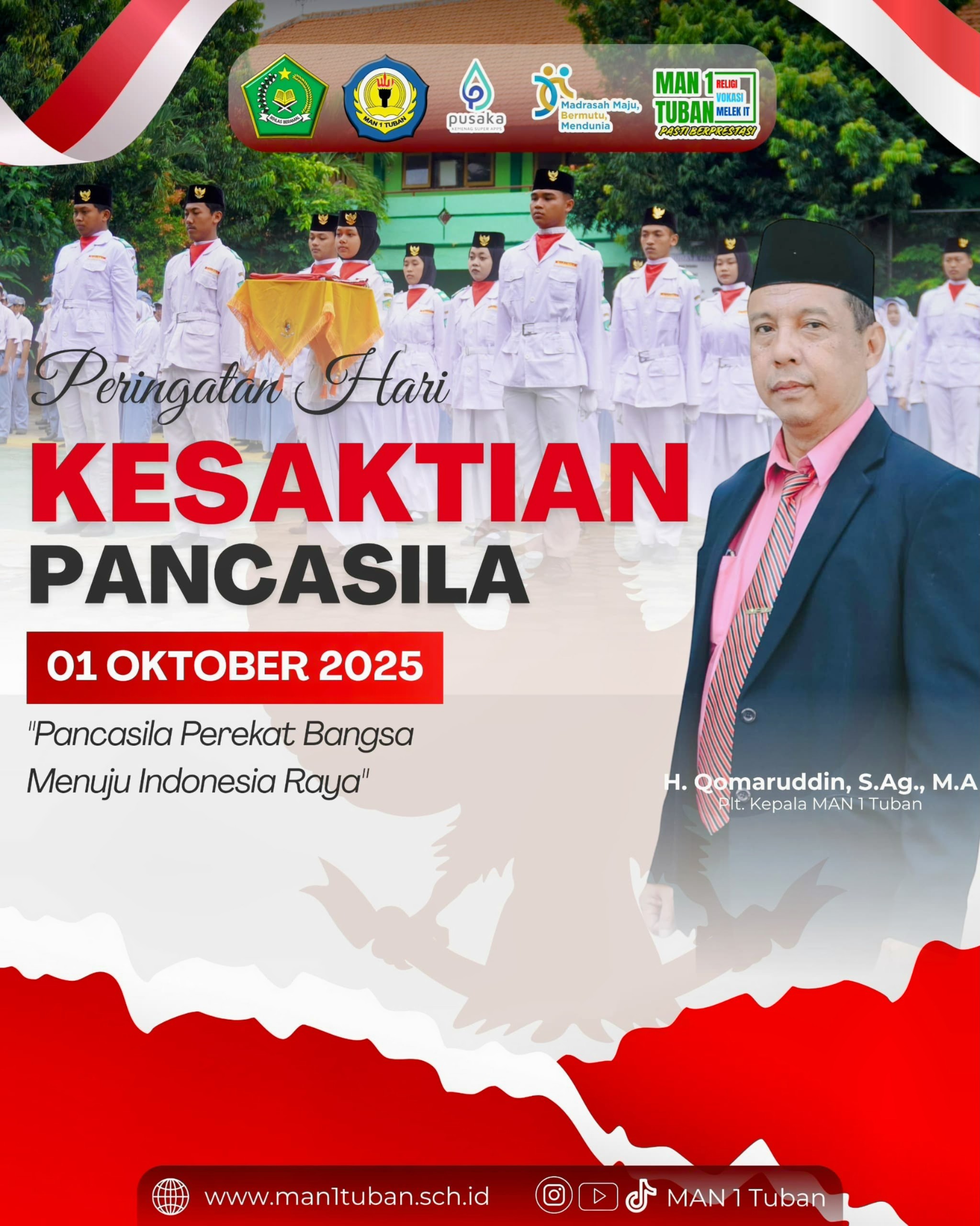 Tuban, 1 Oktober 2025 – MAN 1 Tuban melaksanakan upacara peringatan Hari Kesaktian Pancasila pada Rabu (1/10) di halaman madrasah. Upacara diikuti oleh seluruh